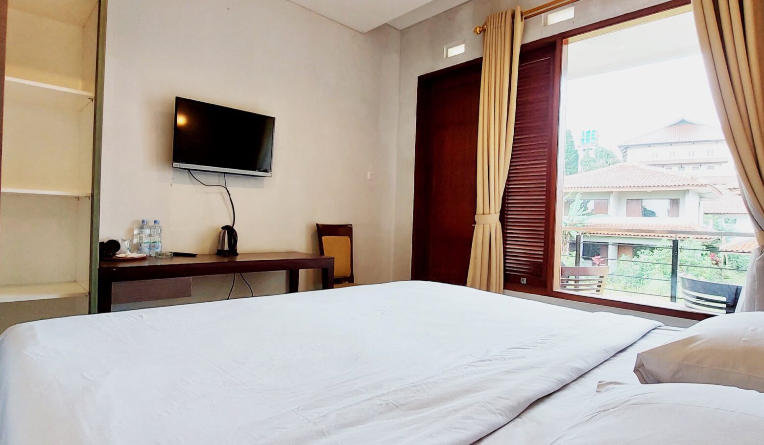 Kamar Hotel Twin Standard Capacity: 2 Dewasa Kasur: 2 Twin Ukuran: 12m² ; Deskripsi Kamar Kamar seluas 12 m² ini memiliki dua twin beds yang nyaman dan fasilitas modern, termasuk water heater 24 jam dan sarapan gratis! Cocok untuk teman atau keluarga kecil yang menginginkan kenyamanan tanpa kompromi. Fasilitas Free Wifi Breakfast TV Water HeaterRead More